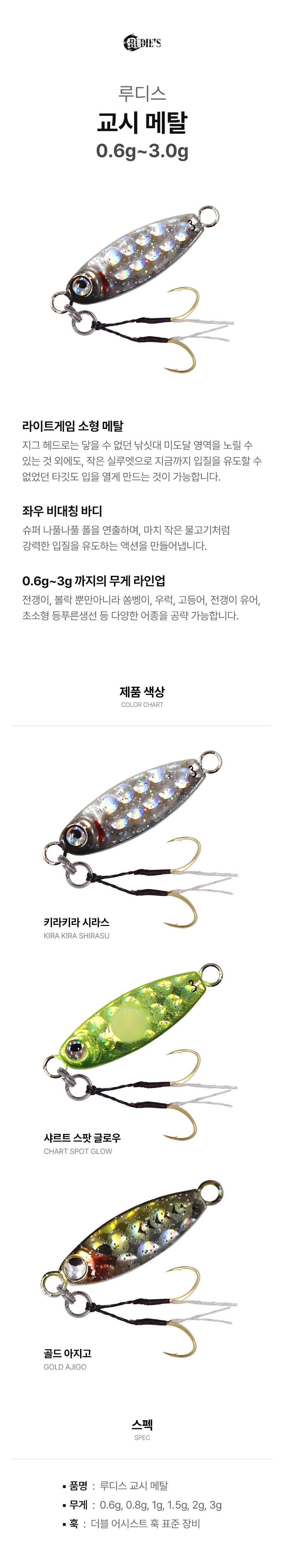 루디스 교시 메탈 0.6g~3g 볼락 전갱이 라이트게임 소형메탈