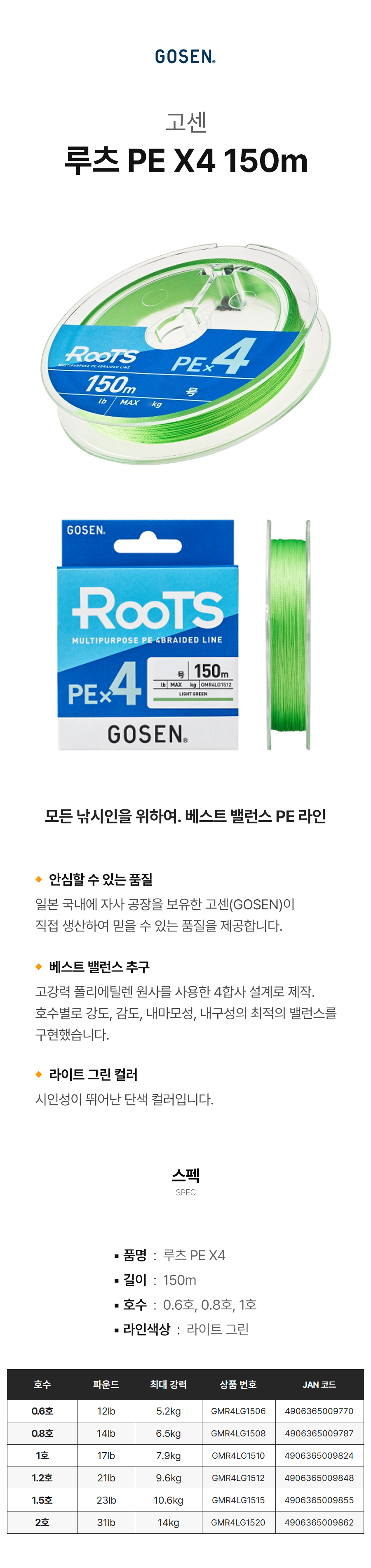 품명 및 모델명 고센 루츠PE X4 150m