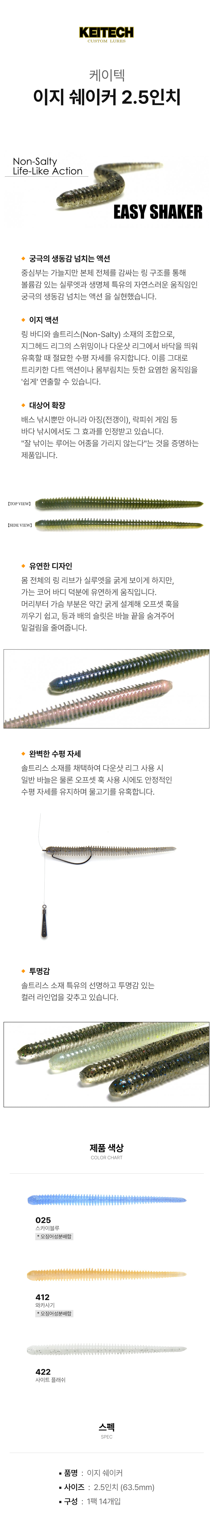 이미지 확대보기케이텍 이지 쉐이커 2.5인치 아징 전갱이 웜